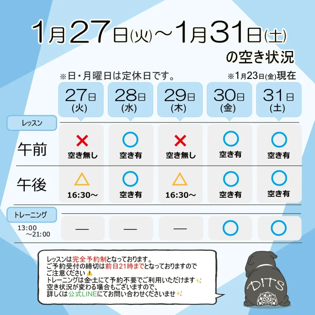 今週の空き状況(1/27~1/31)