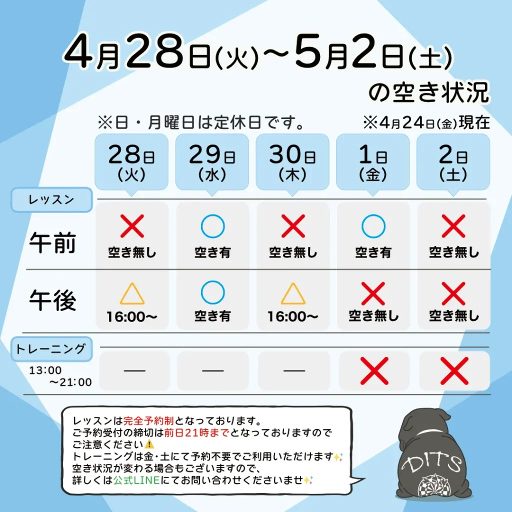 今週の空き状況(4/28~5/2)